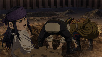 アイヌの金塊は土地の購入にすべて使われてしまったわけではなく、半分ほどがまだ手つかずで残っている――土方がその事実に気づいたことで、にわかに色めき立つ杉元たち。だが、そこに鶴見中尉率いる第七師団を載せた駆逐艦が現れ、海上から五稜郭に向けて艦砲射撃を仕掛けてきた。投降の意を示した永倉が鶴見中尉に権利書を譲り渡すことを条件に仲間の命の保証を懇願するも、芝居だと見抜かれて交渉は失敗。同じ頃、杉元たちは土方が門倉の刺青をもとに残りの金塊の在り処だとにらんだ場所で馬用の井戸を発見する。杉元とアシㇼパがさっそく井戸の中を調べに向かい、そこで二人は長い旅の中でずっと探し求めてきた金塊をついに見つけ出す。