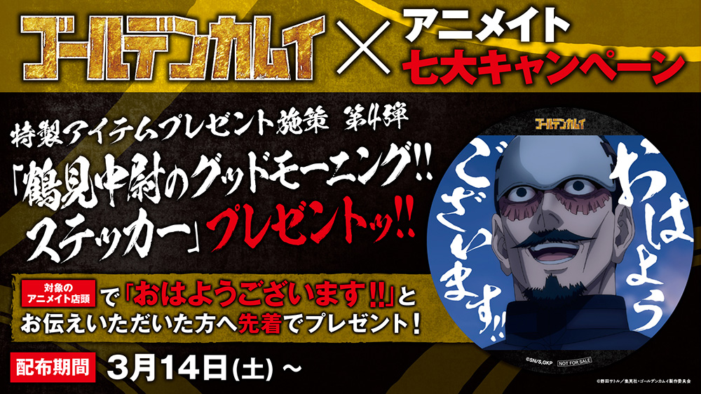 期間中、対象店舗の店頭で【おはようございます!!】とお伝えいただいた方へ、先着で「鶴見中尉のグッドモーニング!!ステッカー」をプレゼント!