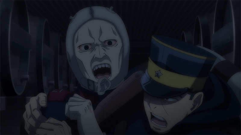 花火が誤って打ち上げられるのと前後して、別の場所では本物の犯人であるマイケル・オストログが夏太郎の変装に引っかかっていた。土方が仕留めにかかるも、これを回避したオストログはそのまま逃走。一方、花火の発射で色めき立つ杉元たちは、牛山を追って工場内に侵入する。そこに宇佐美と合流していた第七師団が立ちふさがり、ビール樽が並ぶ貯酒室で戦闘が勃発。樽から流出したビールを浴びて杉元たちが泥酔状態に陥る中、その場からアシㇼパを連れ出した菊田は、彼女に父親の身に何が起きたのかを知るために鶴見中尉と話すよう説得を試みる。だがアシㇼパはこれを拒絶、父親の汚名をそそぐよりもアイヌの未来を優先させると力強く言い放つ。